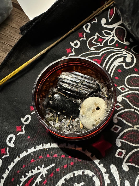 Travel Protection | Witches Black Salt | Altar Salt | Hag Stone
